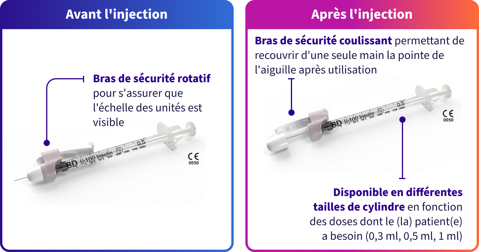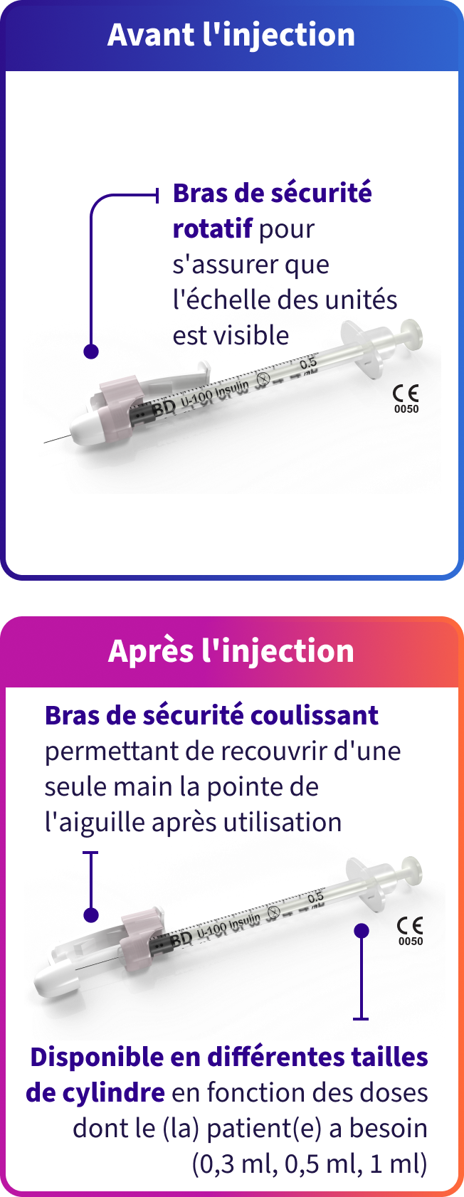 Seringues à insuline sécurisées BD SafetyGlideTM