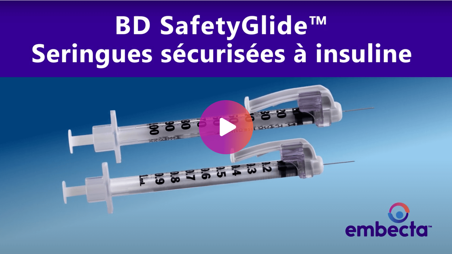 La seringue à insuline BD SafetyGlideTM est conçue pour protéger les professionnels de santé contre les blessures par piqûre d'aiguille