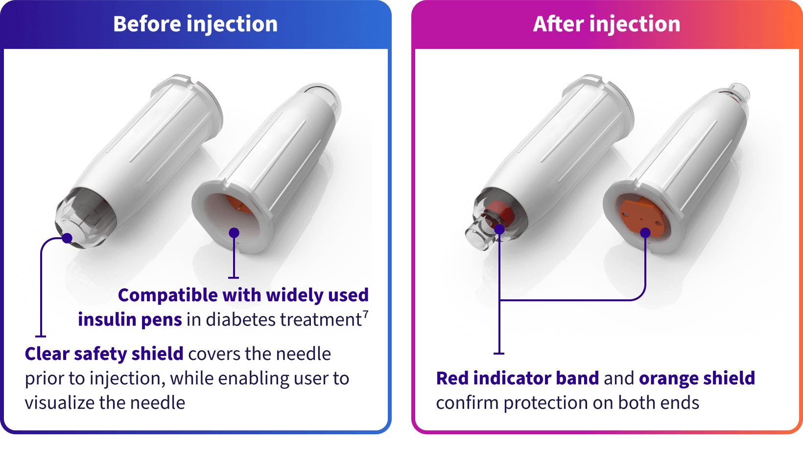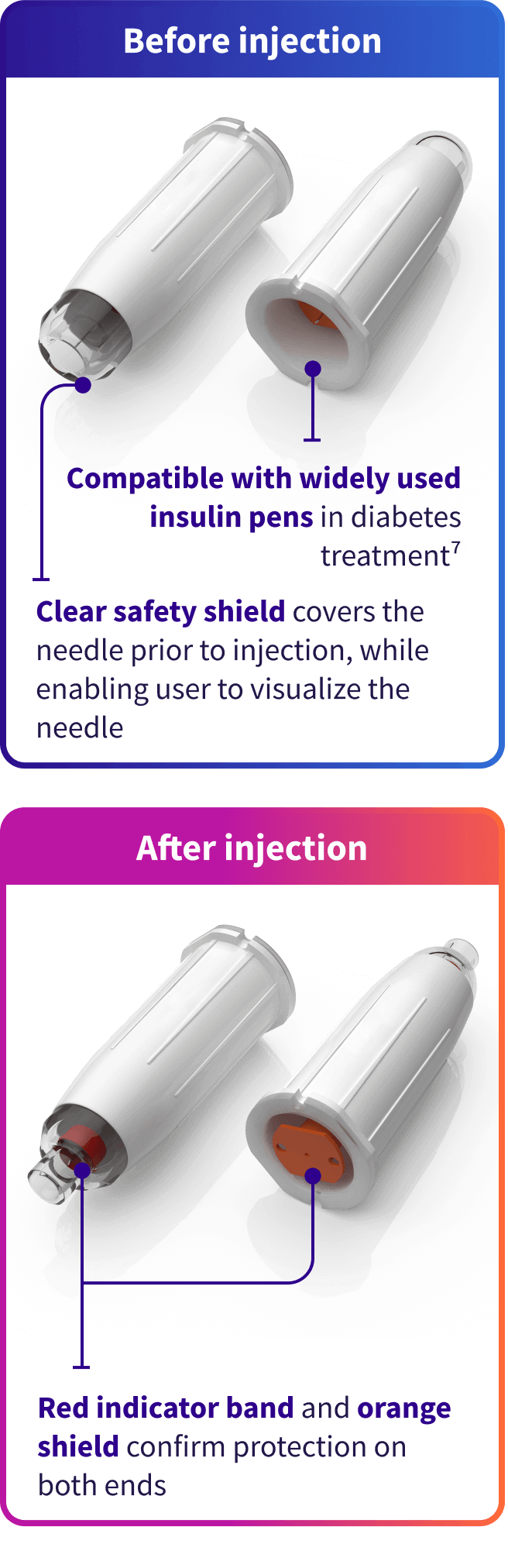 The AutoShield DuoTM 5mm Safety Pen Needle automatically conceals both ends of the needle after use, reducing the risk of accidental NSIs