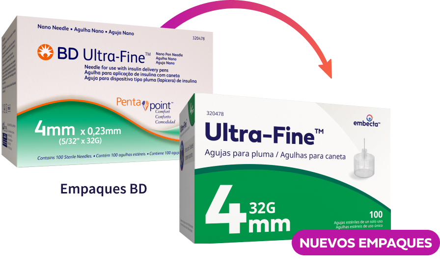 Una gama de longitudes de aguja y diferentes capacidades diseñadas para satisfacer las necesidades de las personas con diabetes.