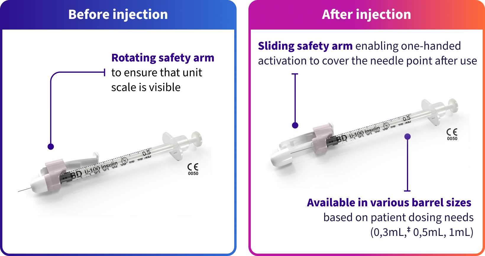 The BD SafetyGlide™ Insulin Syringe is designed to help protect healthcare workers from NSIs