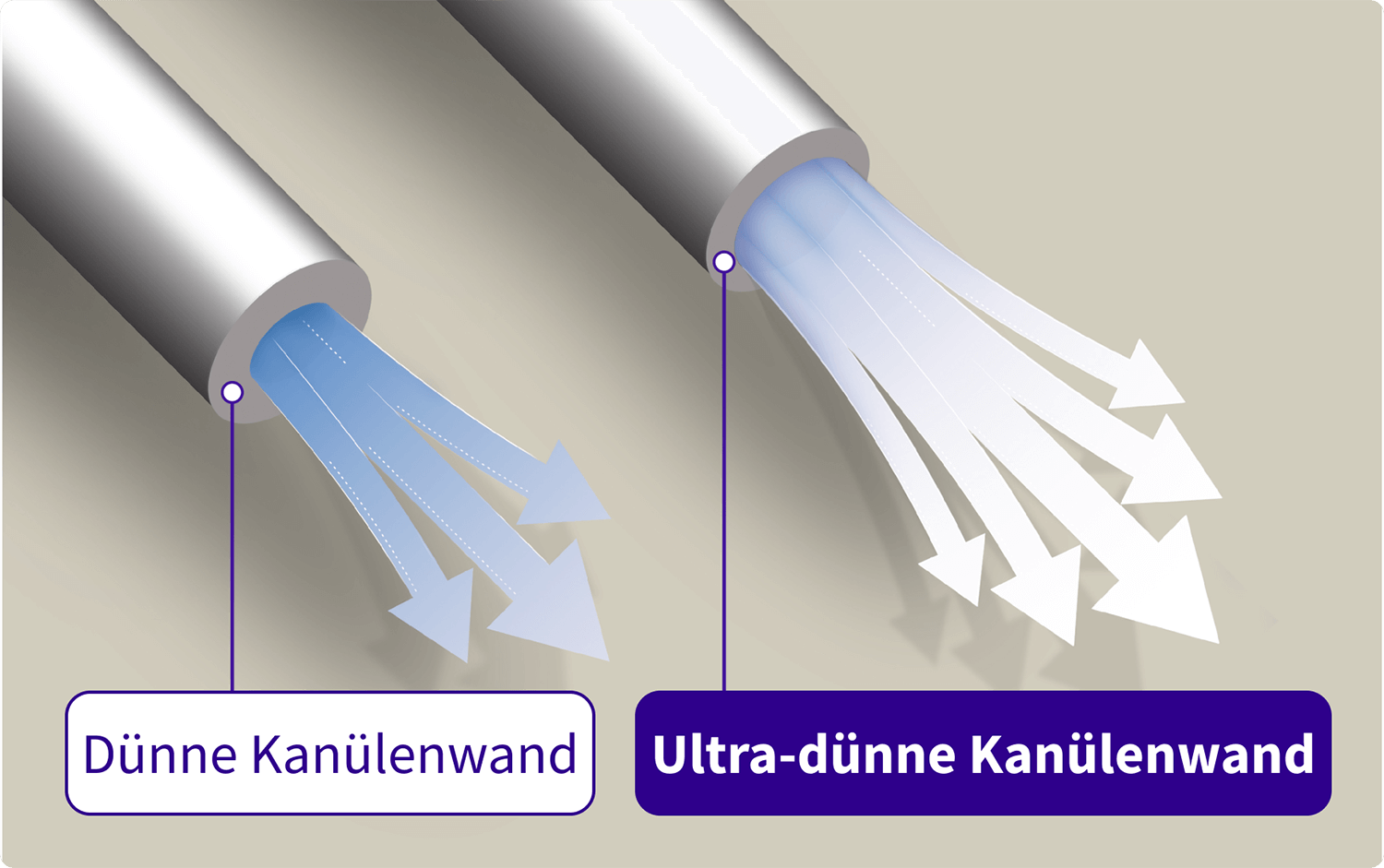 Konsistenz durch gerillte, flache Nadelbasis