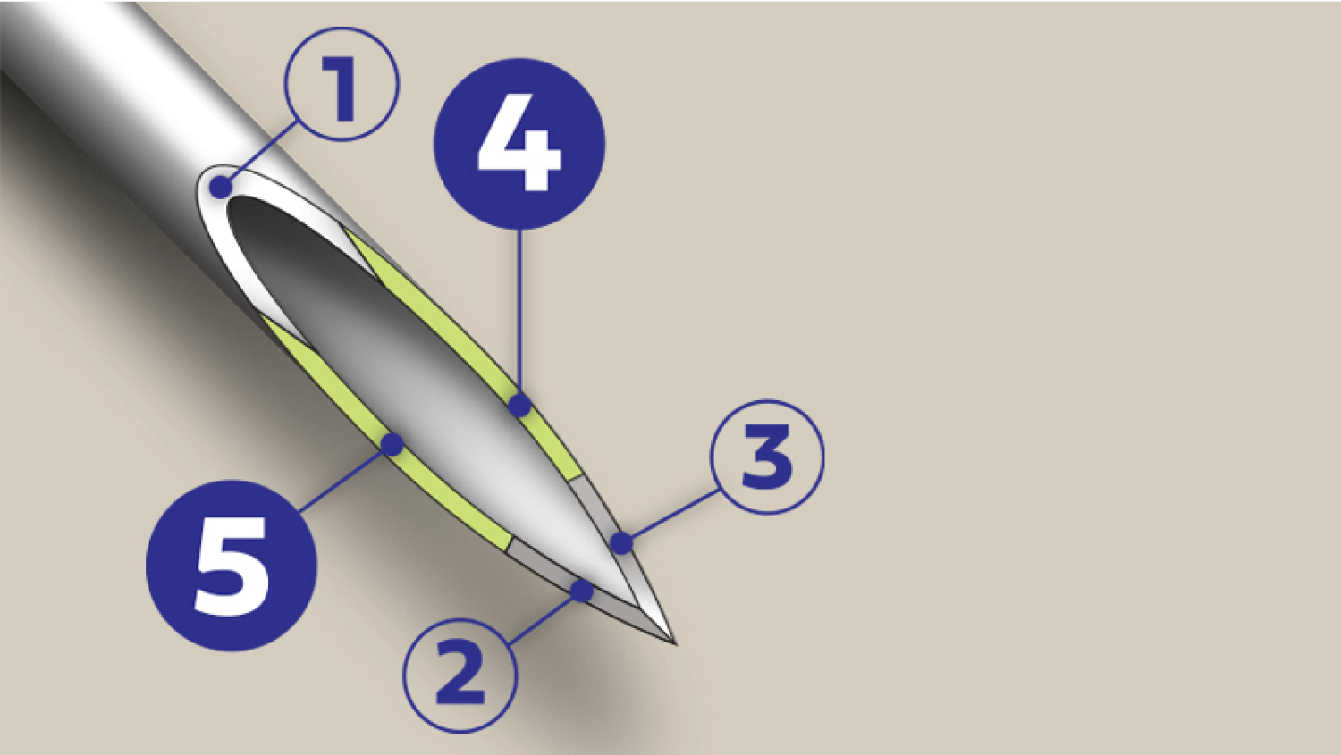 Komfort durch 5-fach-Schliff der Nadelspitze