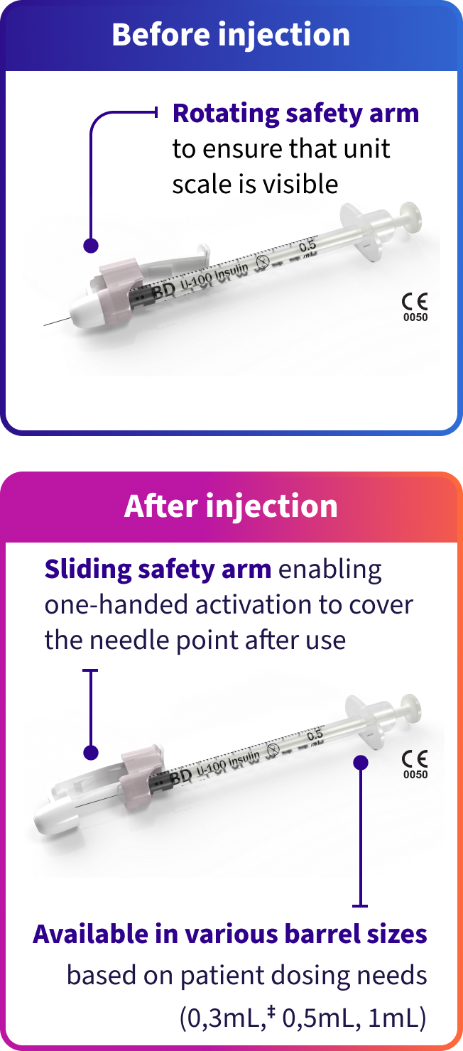 The BD SafetyGlide™ Insulin Syringe is designed to help protect healthcare workers from NSIs
