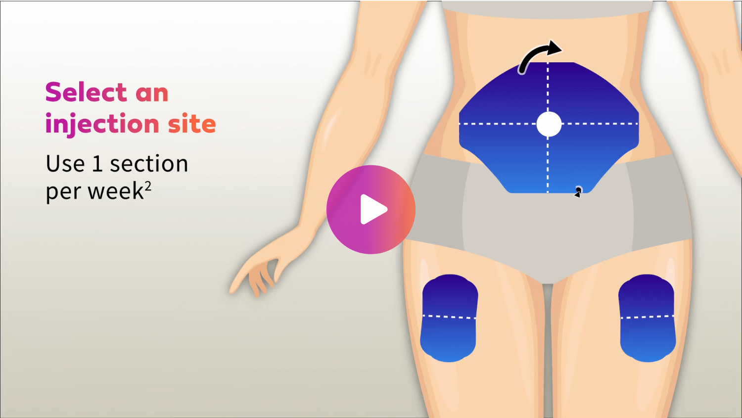 Rotating injection sites correctly could help to avoid the development of lumps and bumps under your skin known as lipohypertrophy (lipo). Injecting into lipo can affect how your body absorbs insulin, leading to blood sugar variations.5 Discover the best sites to use and learn how to rotate between them effectively.