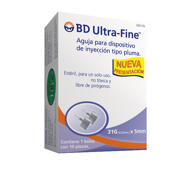 Las agujas para plumas BD Ultra-FineTM tienen características innovadoras que han demostrado proporcionar una experiencia de inyección más fácil y cómoda, y la confianza de que se ha administrado la dosis completa de insulina.1,2‡§